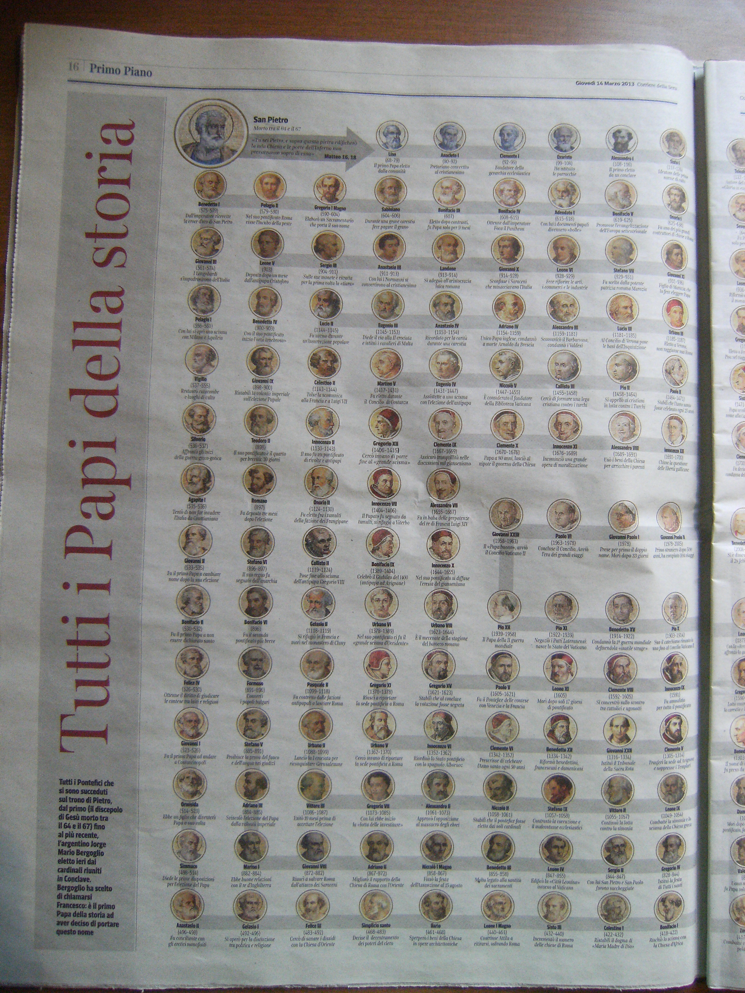 La sorpresa di Francesco prima pagina de Corriere della Sera del 14 marzo 2013, pagina 2, pagina 3 , pagina 5, pagina 6, pagina 8, pagina 9. pagina 10, pagina 11, pagina 12, pagina 13, pagina 15, pagina 16, pagina 17