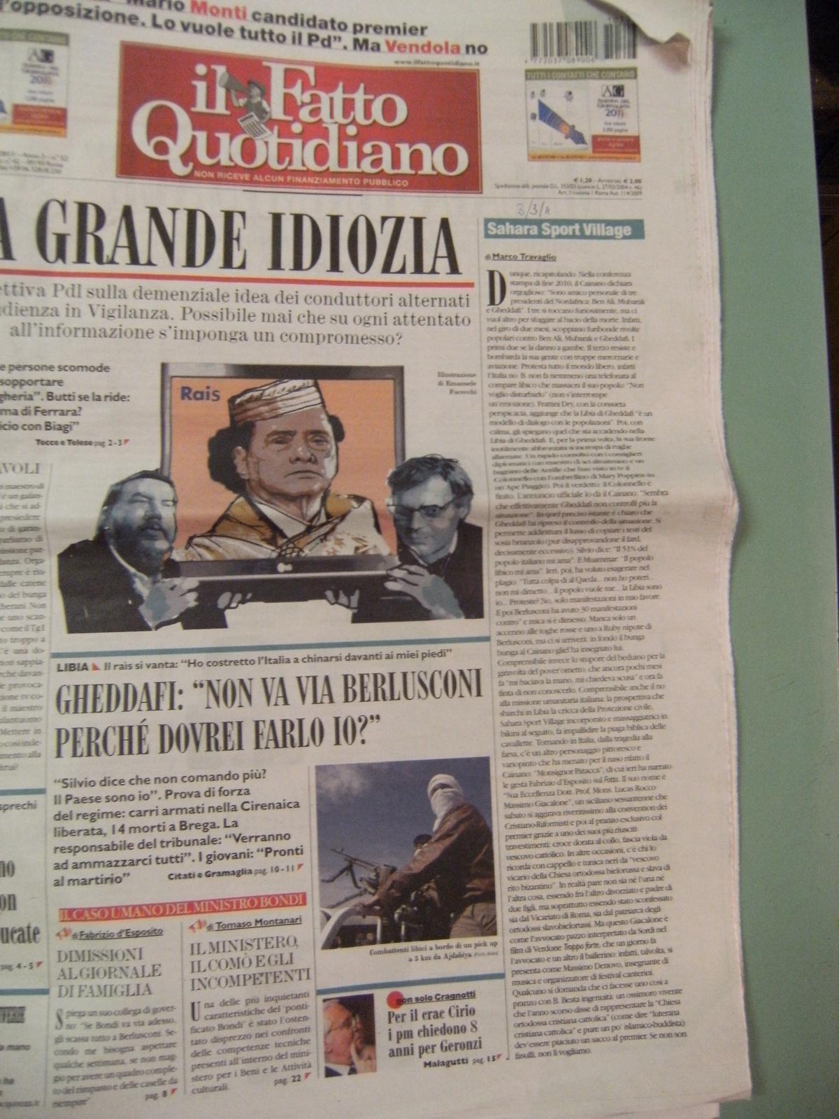 Sahara sport village di Marco Travaglio in Il Fatto quotidano del 3 marzo 2011 prima pagina