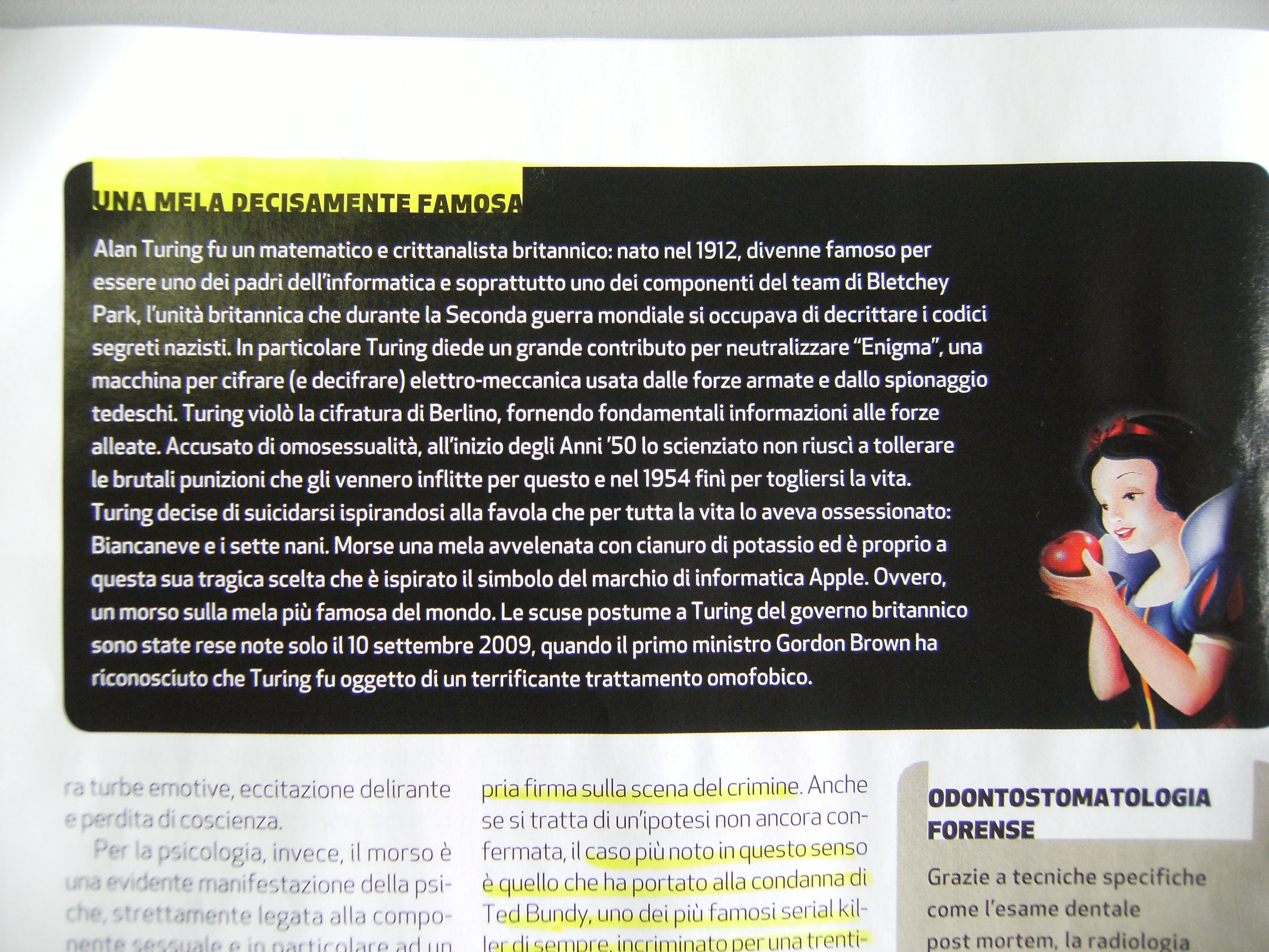 Una mela decisamente famosa su Polizia Moderna del marzo 2010 p. 26 – Alan Turing e il logo della apple