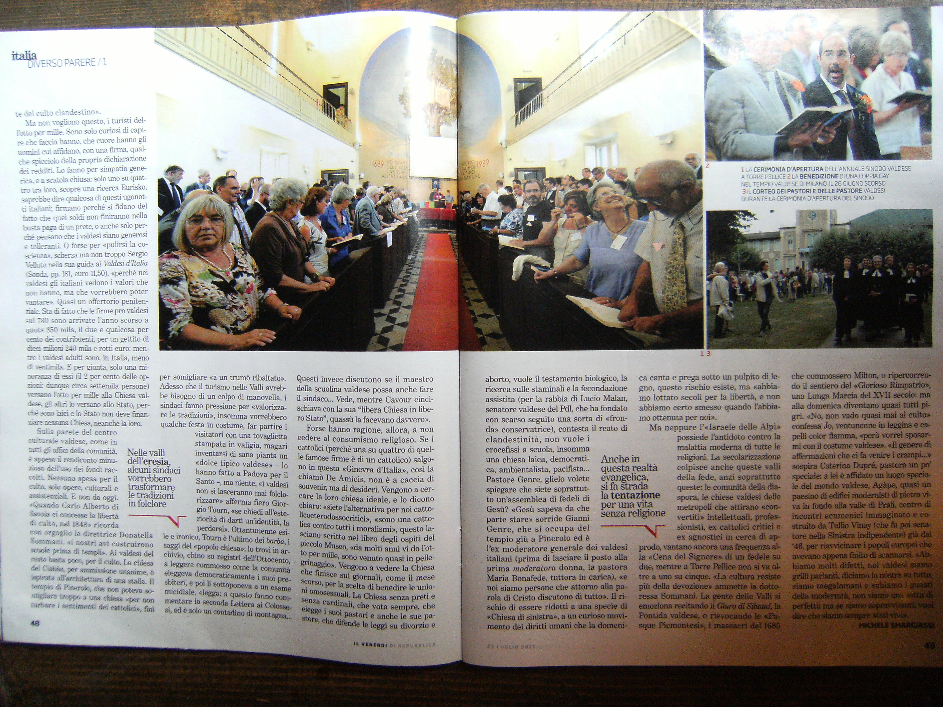 Valdesi, i cristiani d’Italia che fanno invidia ai cattolici smarriti di Michele Smargiassi su Il Venerdì di Repubblica del 22 luglio 2011 pp. 46, 47, 48, 49