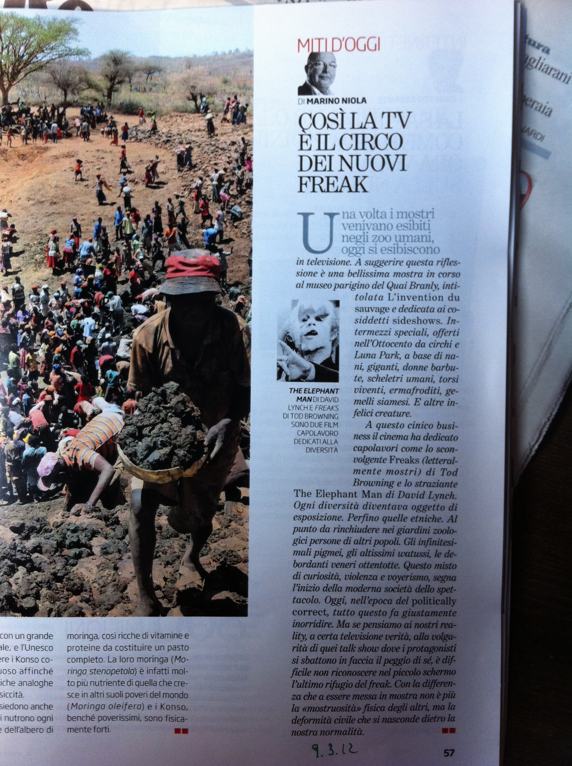 Così la TV è il circo dei nuovi freak di Marino Niola su Il Venerdi di Repubblica del 9 marzo 2012 p. 57