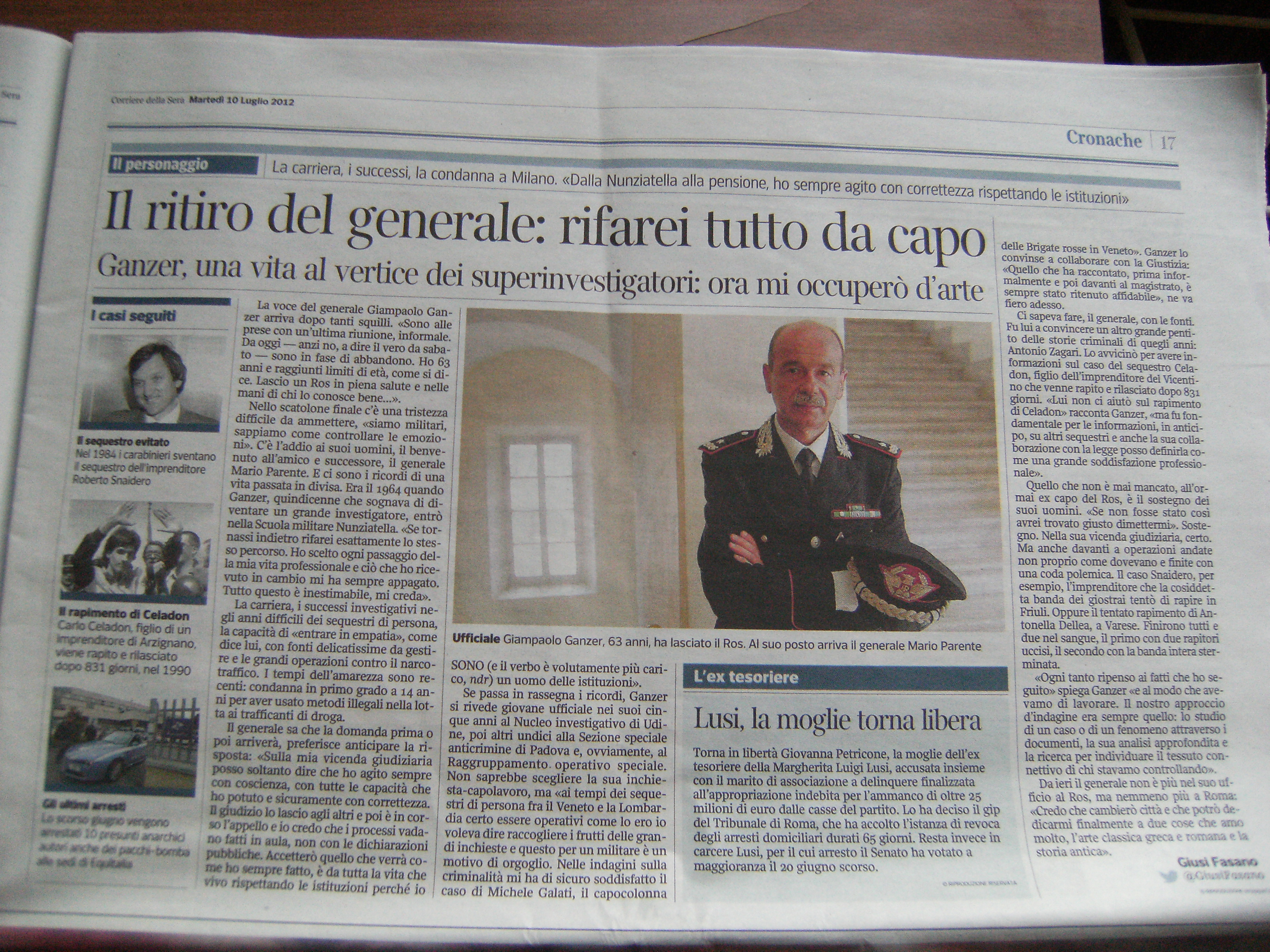 Il ritiro del generale: rifarei tutto da capo di Giusi Fasano su Corriere della Sera del 10 luglio 2012 p. 17 – Generale Ganzer