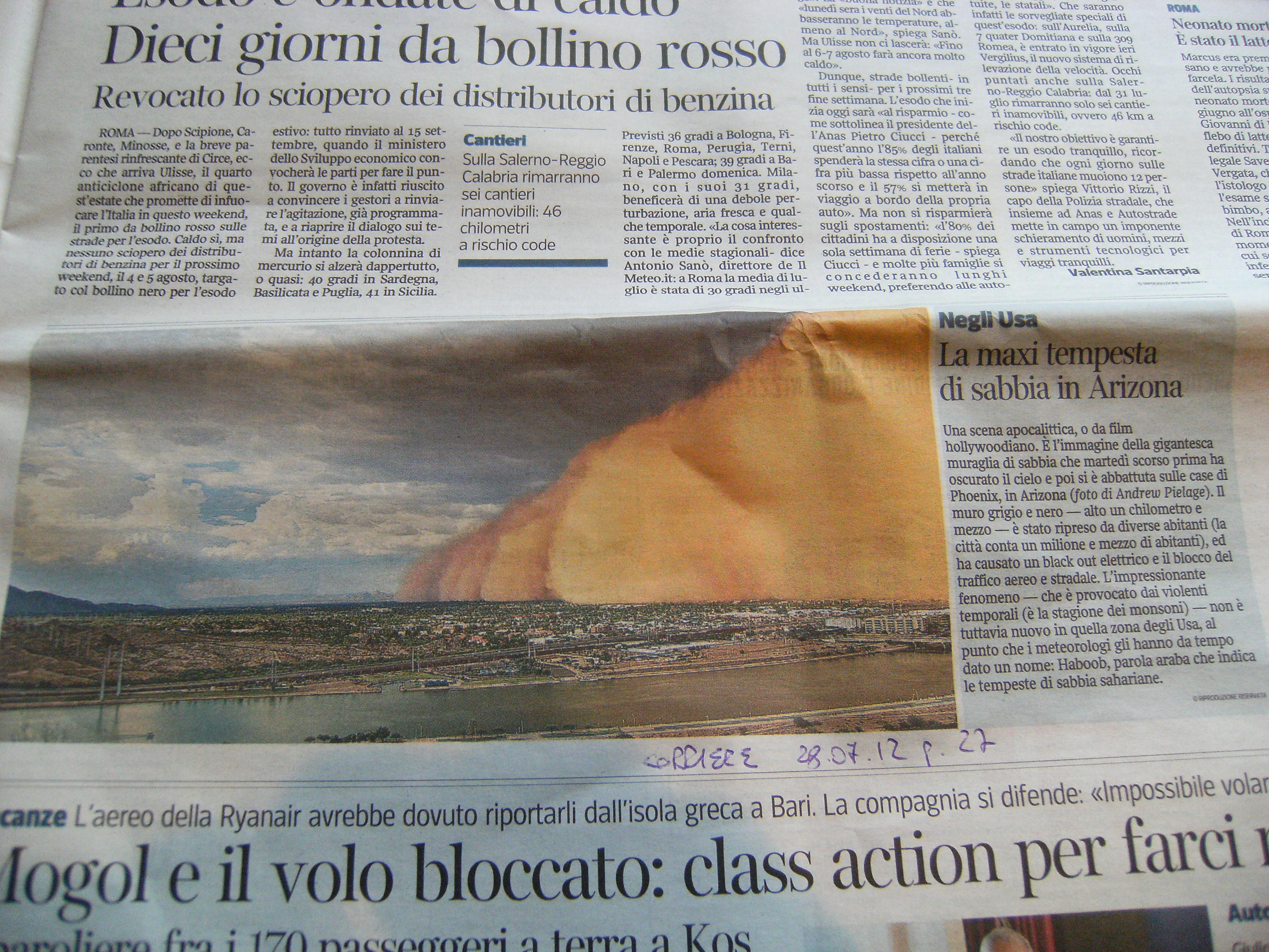 La maxi tempesta di sabbia in Arizona su Corriere della Sera del 28 luglio 2012 p. 27