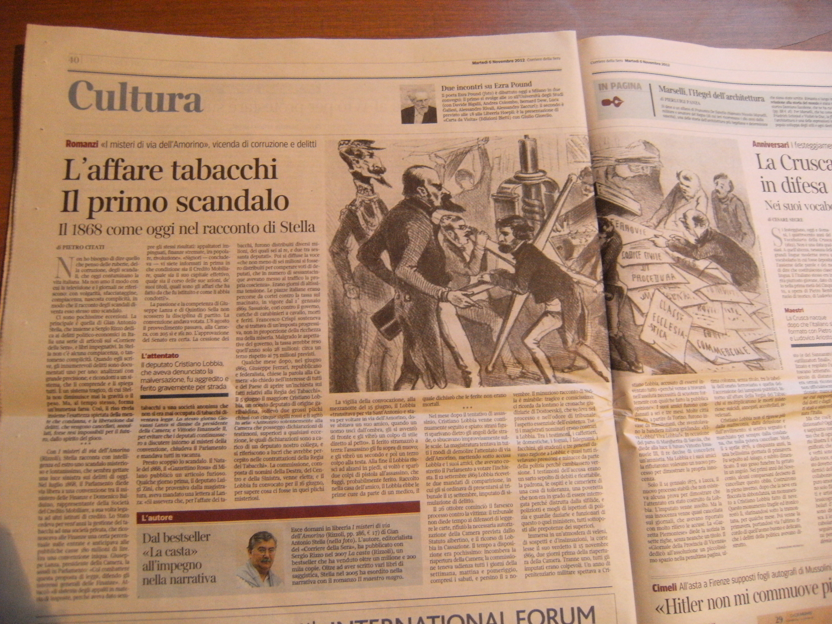 L’affare tabacchi. Il primo scandalo di Pietro Citati su Corriere della Sera del 6 novembre 2012 pp. 40, 41 – Recensione al libro “I misteri di via Amorino” di Gian Antonio Stella