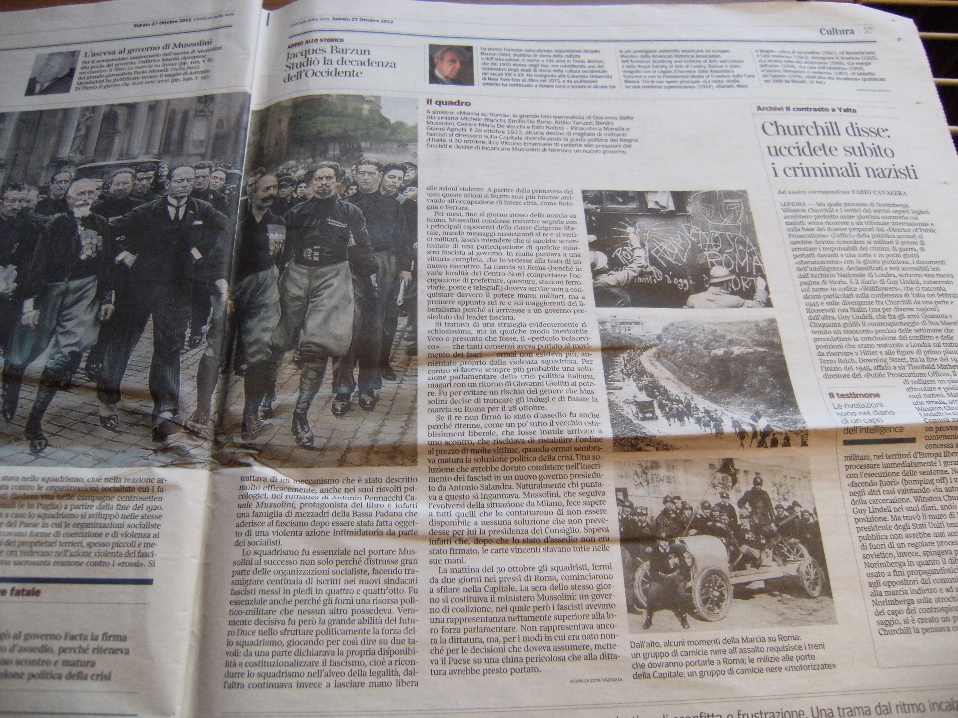 Le cinque cause della dittatura di Giovanni Belardelli su Corriere della Sera del 27 ottobre 2012 p. 56, pagina 57 – Marcia su Roma