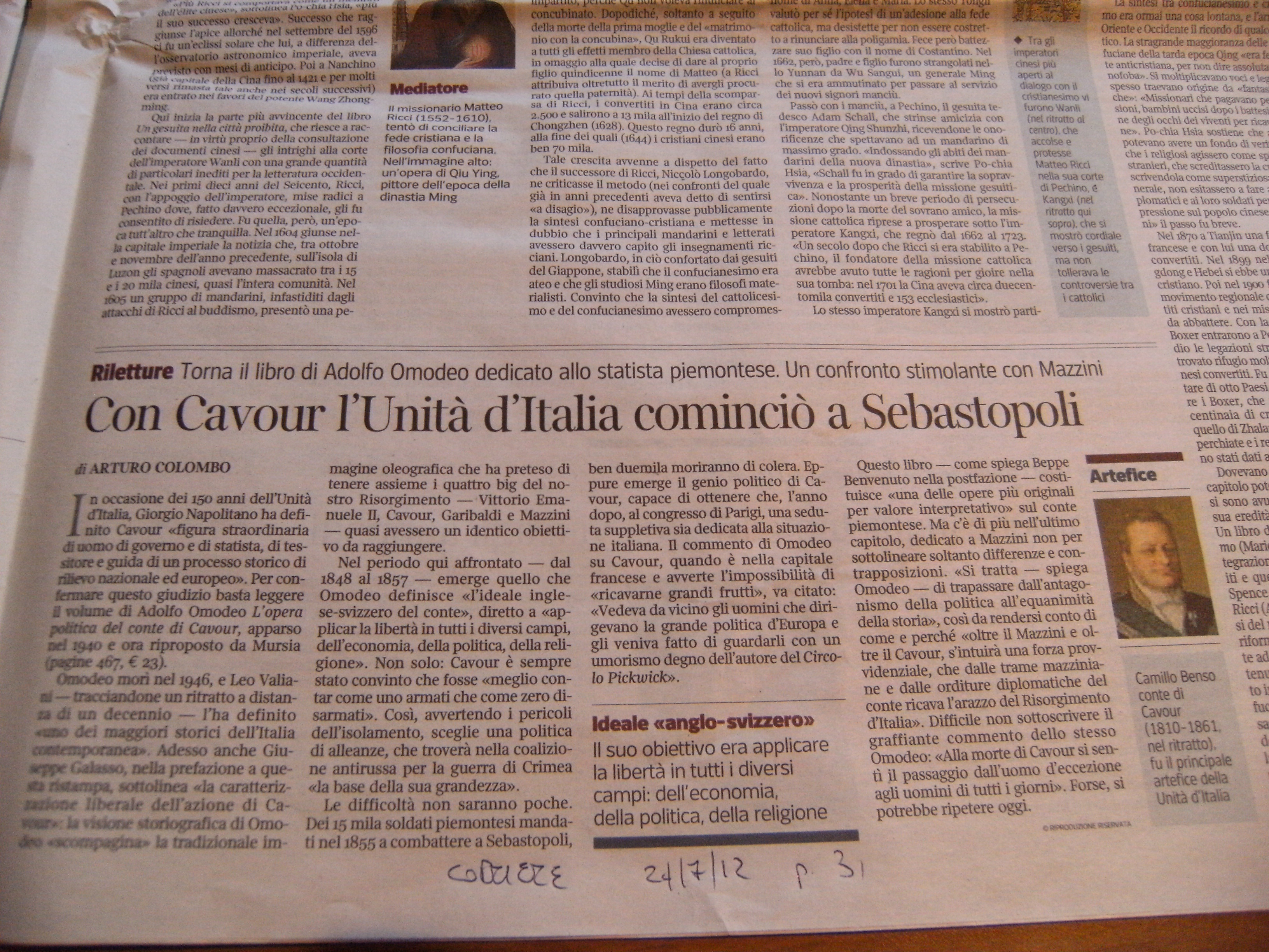Con Cavour l’Unità d’Italia cominciò a Sebastopoli di Arturo Colombo su Corriere della Sera 24 luglio 2012 p. 31