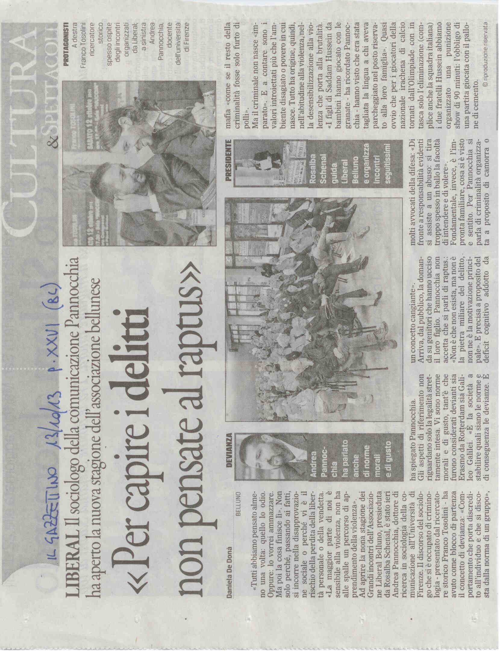 “Per capire i delitti non pensate al raptus” di Daniela De Donà su Il Gazzettino Belluno del 13 ottobre 2013 p. XXVI Formato JPG
