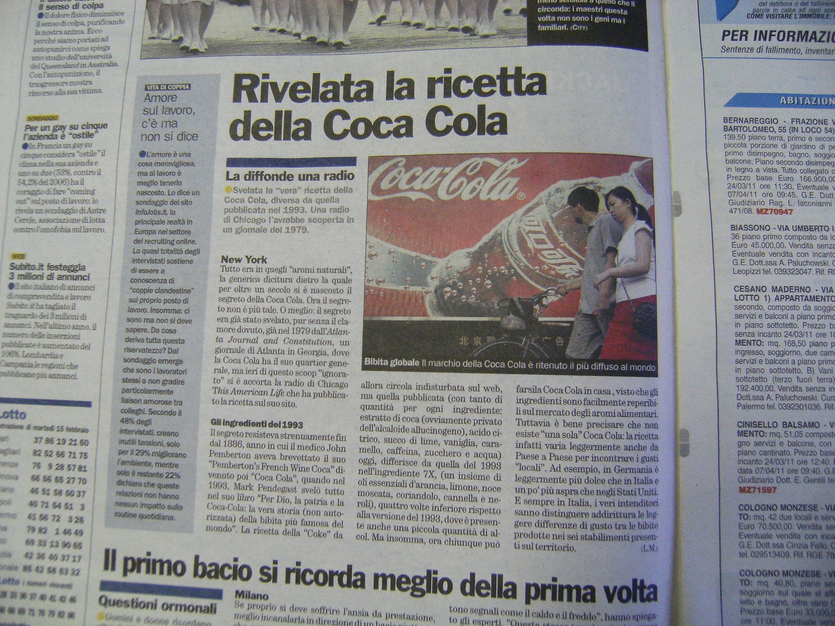 Rivelata la ricetta della Coca Cola – L.M. – City del 16 febbraio 2011 p.8